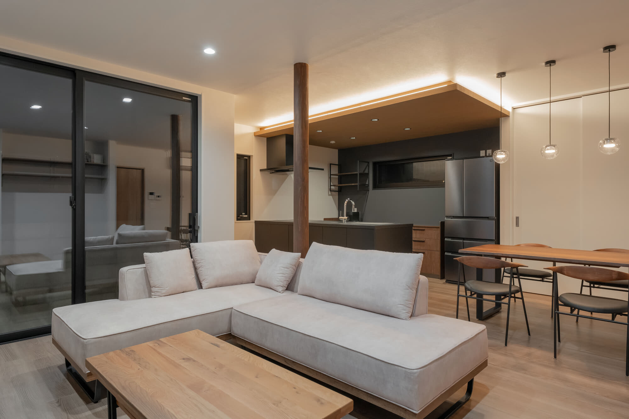 また、リビング空間はガレージ内部が見え、大空間を実現しているのも特徴の1つです。