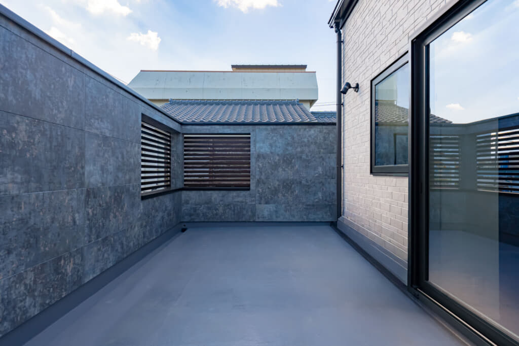 10帖以上ある2階のバルコニーでもプライベート空間を守る工夫を取り入れたお家。