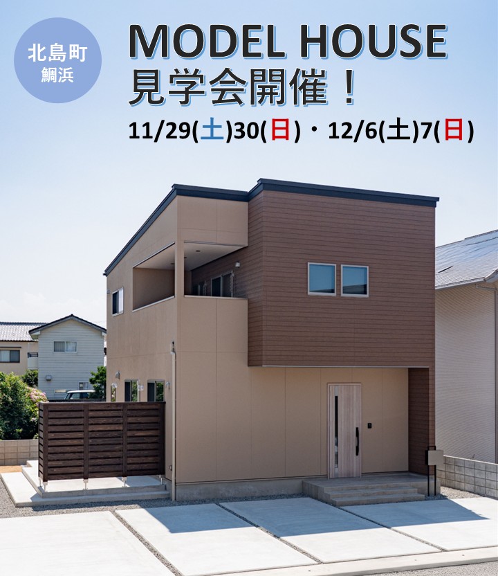 11月29日(土)30日(日)・12月6日(土)7日(日) 北島町鯛浜:モデルハウス見学会のお知らせ