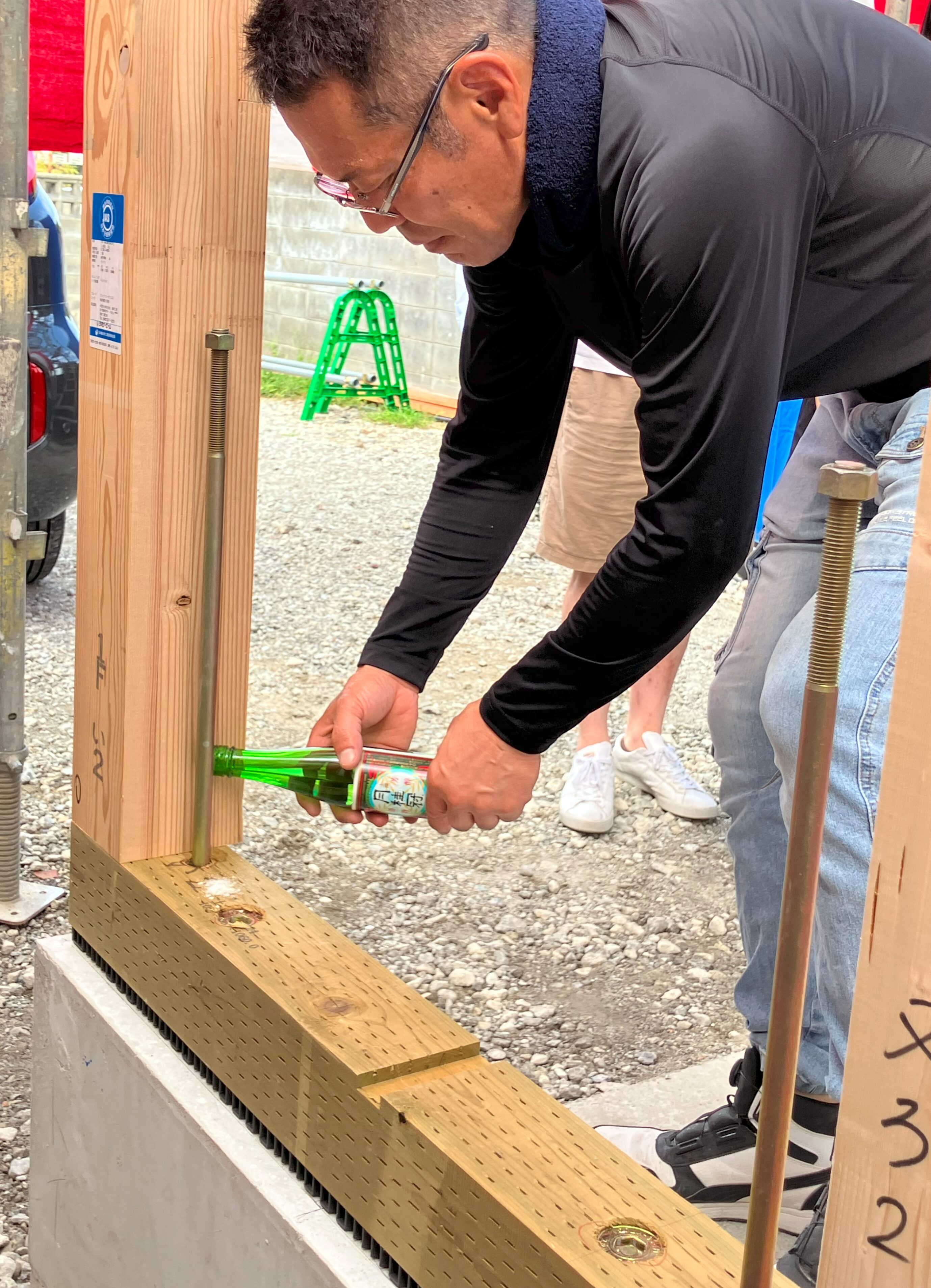 工事の安全を祈願し、棟梁に清めて頂きました。