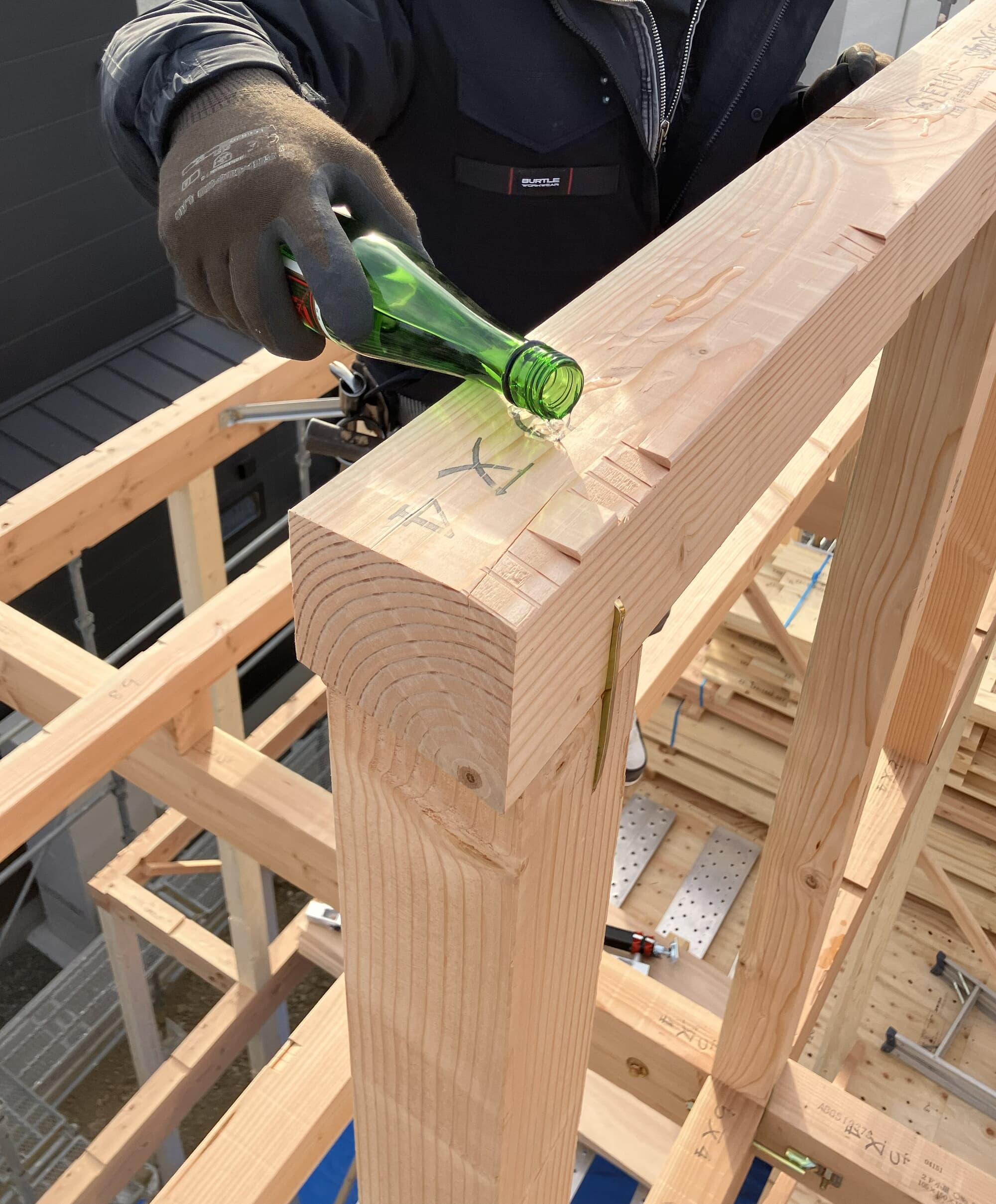 工事の安全を祈願し、棟梁に清めて頂きました。